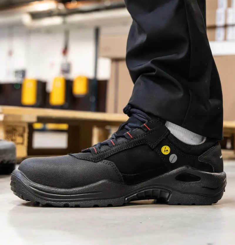 Funguje na princípe kontrolovaného elektrického odporu. Podrážka aj konštrukcia obuvi obsahujú vodivé materiály, ktoré zabezpečujú plynulé uzemnenie pracovníka bez rizika náhlej iskry. ESD obuv sa preto používa najmä v elektrotechnickom a automotive priemysle, logistických centrách, farmaceutickej výrobe či v prostrediach s rizikom výbuchu, kde je kontrola elektrostatického náboja nevyhnutnou súčasťou bezpečnosti pracoviska.